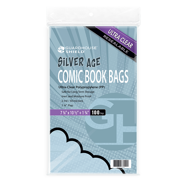 Bolsa resellable apta para cómics de la Edad de Plata con un tamaño comprendido entre 6,75 y 7,125 x 10,25 pulgadas. Muchos cómics publicados entre 1960 y 1980 son compatibles con esta bolsa.