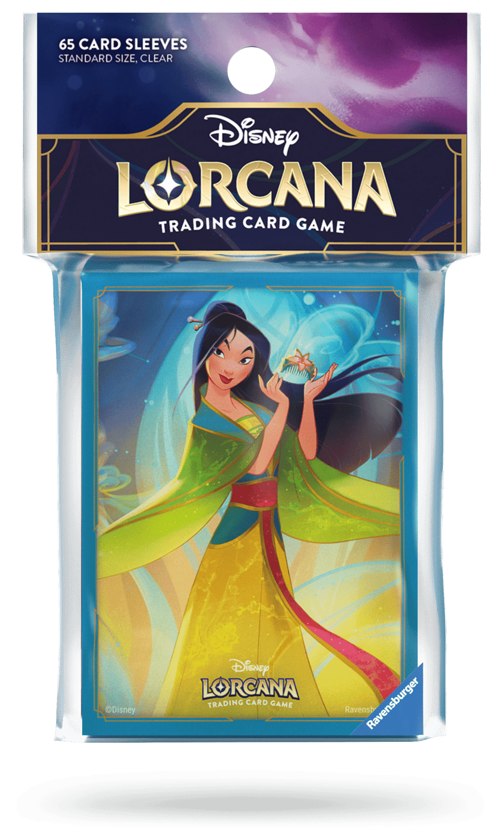 Cada paquete contiene 65 fundas para cartas con acabado mate que presentan un brillo de Disney Lorcana TCG.