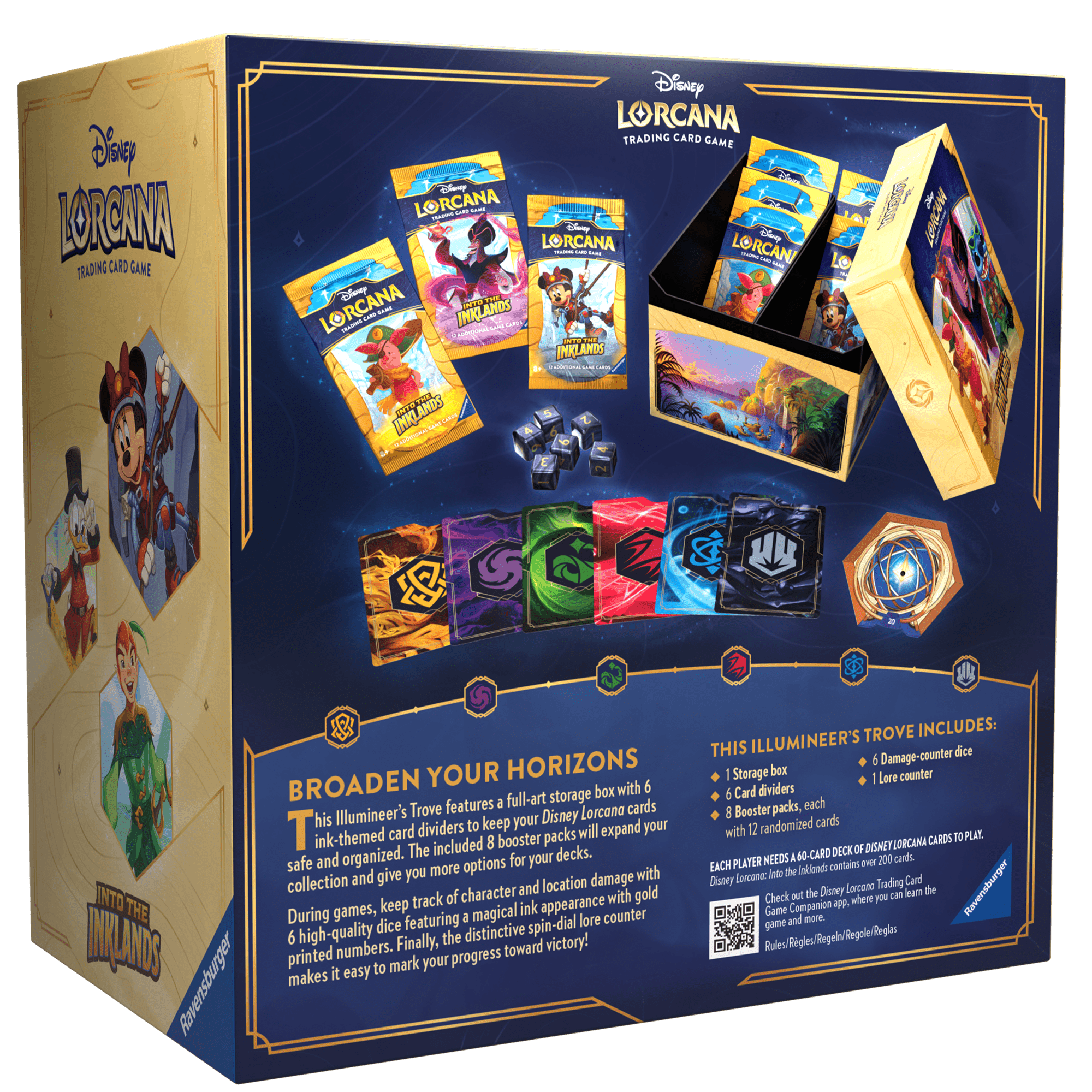 This set will change up your game with a brand-new element: location cards! Discover new landscapes as you venture across the Inklands in search of lore that was scattered by the recent flood. These locations add a whole new dimension of gameplay and a fresh new spin to every deck. One of the other thrilling aspects is the introduction of more beloved Disney properties, including DuckTales, TaleSpin, and Treasure Planet. You can send Disney's Kit Cloudkicker questing through the air on his airfoil, draw a solar sailing Disney's Jim Hawkins card into your hand, and more! Theres so much that awaits in the Inklands..